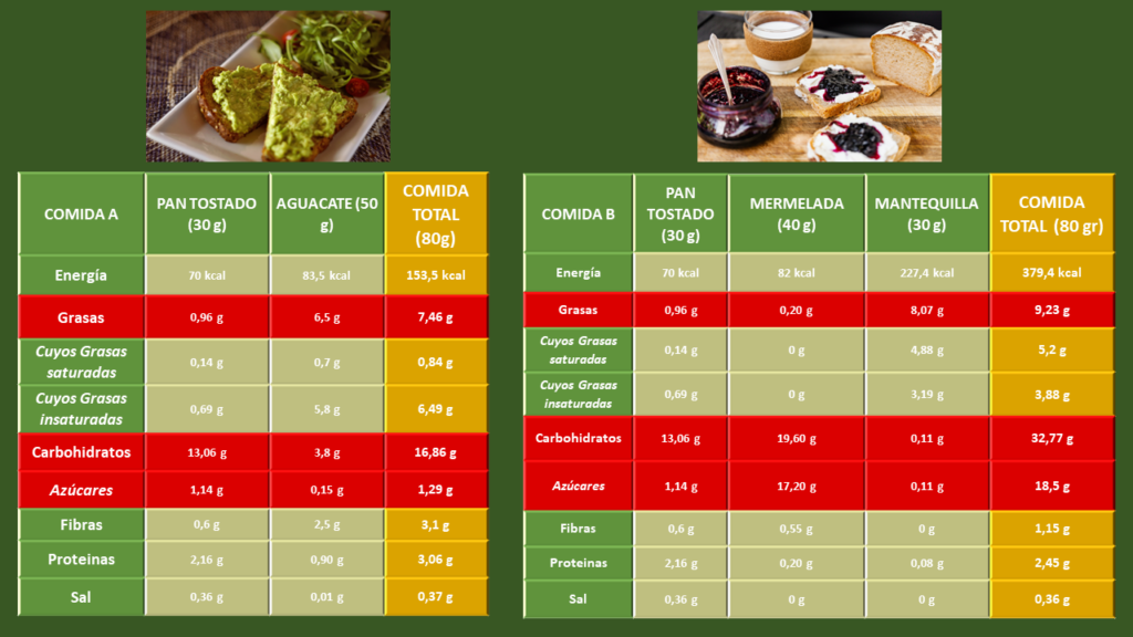 80g de pan tostado con Mantequilla vs 80 g Pan Tostado con Aguacate (FUENTE: UNIVERSITÁ DEGLI STUDI DI BARI “ALDO MORO” – DOCTORADO EN ESCIENCIA ALIMENTARIA)